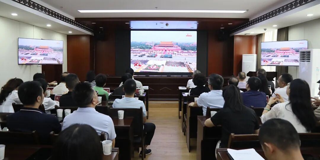 9月3日,省中医药局党组召开第9次理论学习中心组(扩大)学习会,收看纪念中国人民抗日战争暨世界反法西斯战争胜利80周年大会现场直播,集中学习《习近平谈治国理政》第五卷。局党组书记、局长田兴军主持会议并谈认识体会。