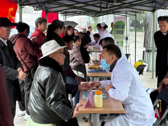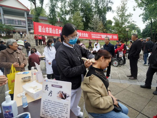 眉山市彭山区中医医院在凤鸣公园开展“情暖重阳 健康相伴”义诊活动。活动现场设置了两大服务区域,满足群众不同需求。在义诊区,专家团队摆开“健康长龙”,把脉问诊、听心肺、测血压、解读报告,为群众提供“一对一”健康服务。