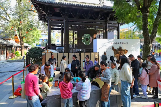 当天,活动现场热闹非凡,文脉坊广场化身中医药文化主题市集,川产道地药材、中医药文创精品、非遗特色产品、绿色甄选商品琳琅满目,直观展现了中医药的独特魅力与现代活力。投壶、识中药、踢毽子等趣味互动小游戏前人头攒动,市民在动手实践中加深了对中医药的认知。