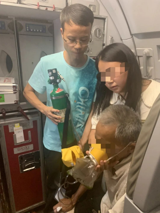 中午1点40分左右,飞机上响起广播:机上有人突发疾病,急需医护人员帮助。付志彬立即来到病人所在的乘务员工作间,突发疾病的是一位75岁左右的老人,付志彬立即开展急救措施,反复询问老人平常疾病。凭借多年的经验,付志彬初步判断是心脏或肺部的问题,也极有可能是哮喘急性发作。付志彬立即给老人服了药,并查看着老人身体的变化。经一系列的急救措施后,老人的情况慢慢好转,基本生命体征也趋于正常。为了不出现意外,在余下的1个多小时飞行里,付志彬一直守护在老人身边,密切监护、并不断安慰老人。直到飞机落地后,目送老人被送上救护车。