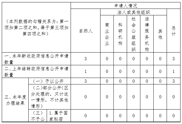 三、收到和处理政府信息公开申请情况