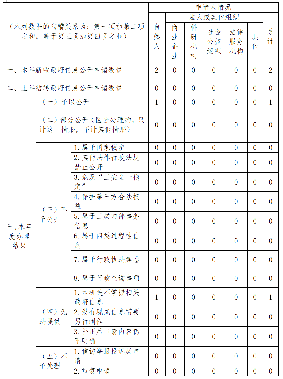 三、收到和处理政府信息公开申请情况