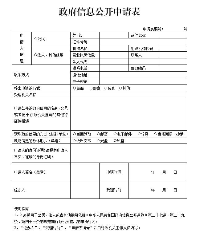 《 十大正规买球网站政府信息公开申请表》填写要求:申请表要逐项填写,字迹清楚、工整,不得涂改;准确、如实填写申请人姓名或机构名称、联系方式等;尽量详细、明确的描述申请获取信息,若有可能,请提供该信息的标题、发布时间、文号等;每份申请表限填一项申请内容。