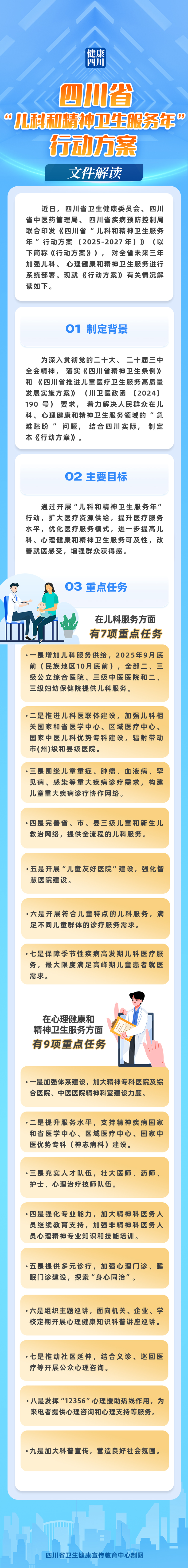 近日,四川省卫生健康委员会、 十大正规买球网站、四川省疾病预防控制局联合印发《四川省“儿科和精神卫生服务年”行动方案(2025-2027年)》(以下简称《行动方案》),对全省未来三年加强儿科、心理健康和精神卫生服务进行系统部署。现就《行动方案》有关情况解读如下。